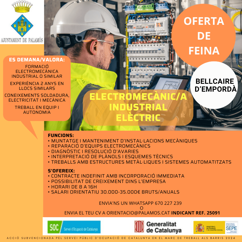 Empresa especialitzada en instal·lacions mecàniques i estructures de ferro busca incorporar un/a Electromecànic/a Industrial ambexperiència demostrable en el sector.