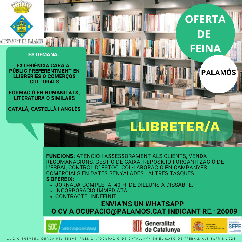 Persona amb experiència com a dependent/a, preferiblement en llibreries o comerços culturals.