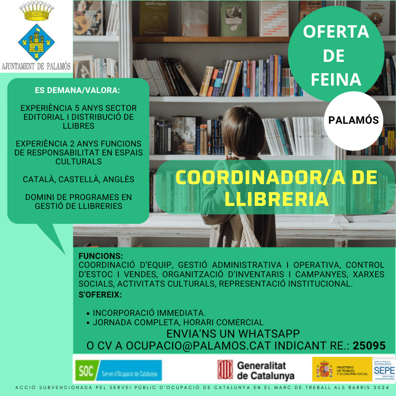 Es cerca coordinador/a de llibreria amb experiència.