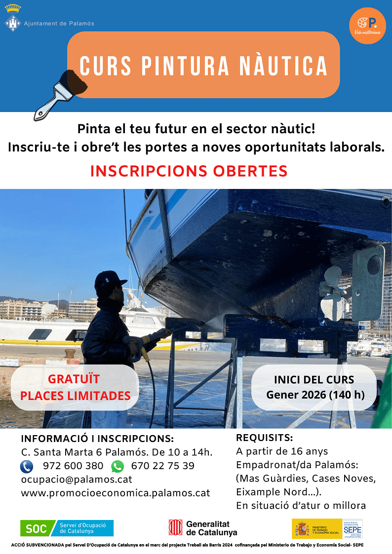 Programa de tallers i formacions subvencionades, per persones empadronades a Palamós.