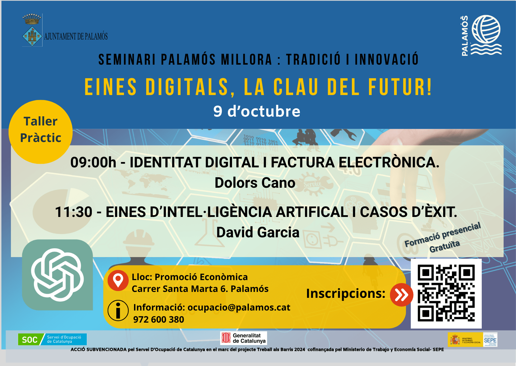 El 9 d’octubre tindrà lloc una sessió formativa gratuïta centrada en les eines digitals com a element clau per al futur dels negocis. Una formació presencial i pràctica adreçada a professionals, empreses i persones emprenedores, amb continguts sobre identitat digital, factura electrònica i aplicacions d’intel·ligència artificial amb casos reals.